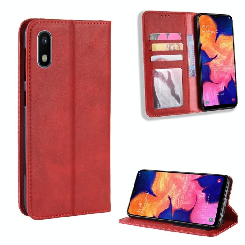 Μαγνητική πόρπη Retro Crazy Horse Υφή Οριζόντια Flip δερμάτινη θήκη για Galaxy A10e , με θήκη & υποδοχές για κάρτες & πλαίσιο φωτογραφιών (κόκκινο)