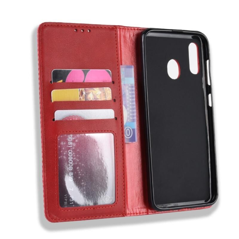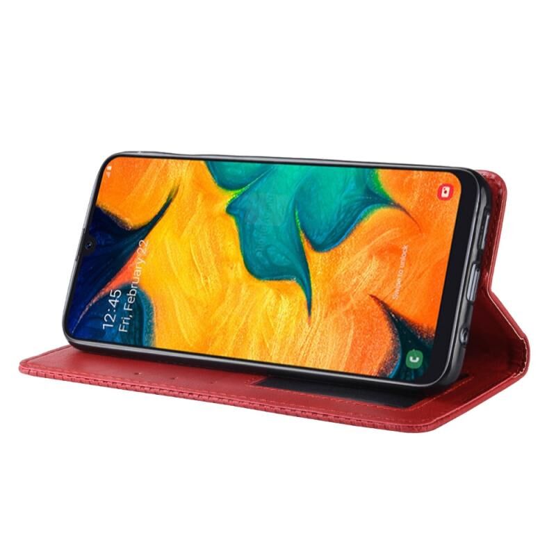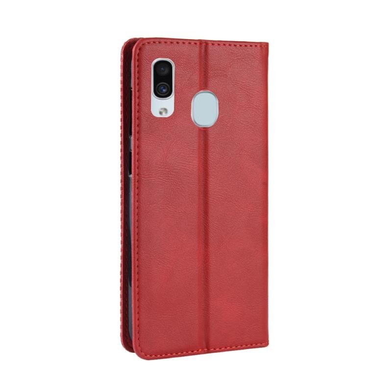 Μαγνητική πόρπη Retro Crazy Horse Υφή Οριζόντια Flip δερμάτινη θήκη για Galaxy A20/A30, με θήκη & υποδοχές για κάρτες & πλαίσιο φωτογραφιών (κόκκινο)