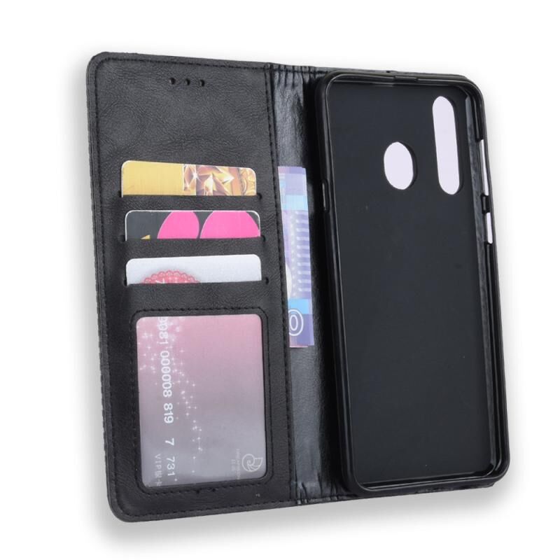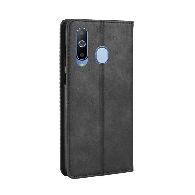 Μαγνητική πόρπη Retro Crazy Horse Υφή Οριζόντια Flip δερμάτινη θήκη για Galaxy A60, με θήκη & υποδοχές για κάρτες & πλαίσιο φωτογραφιών (μαύρο)