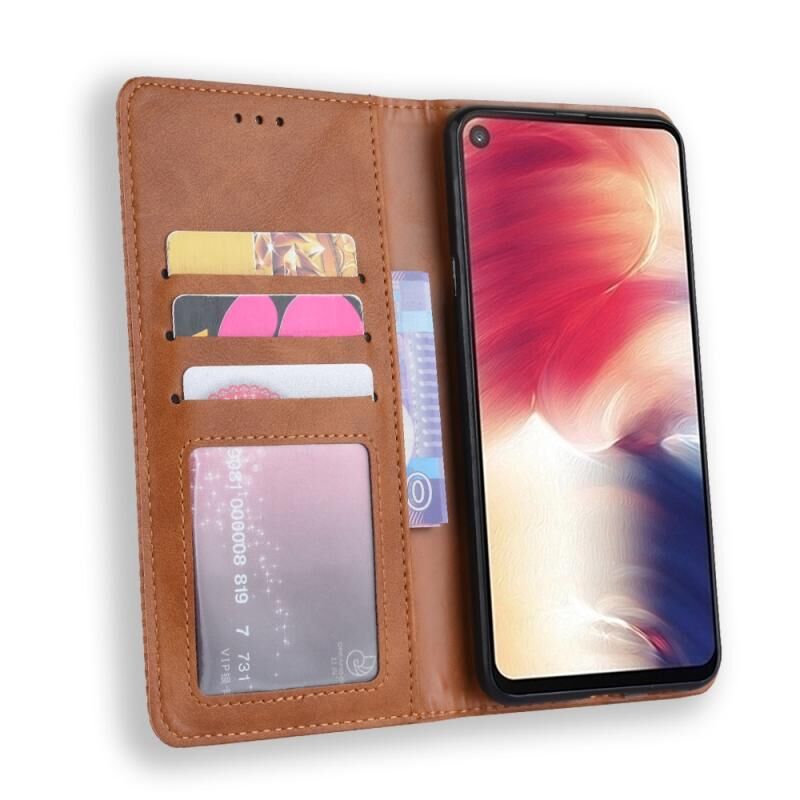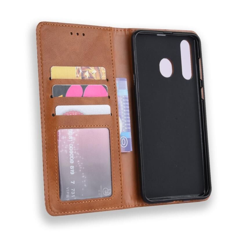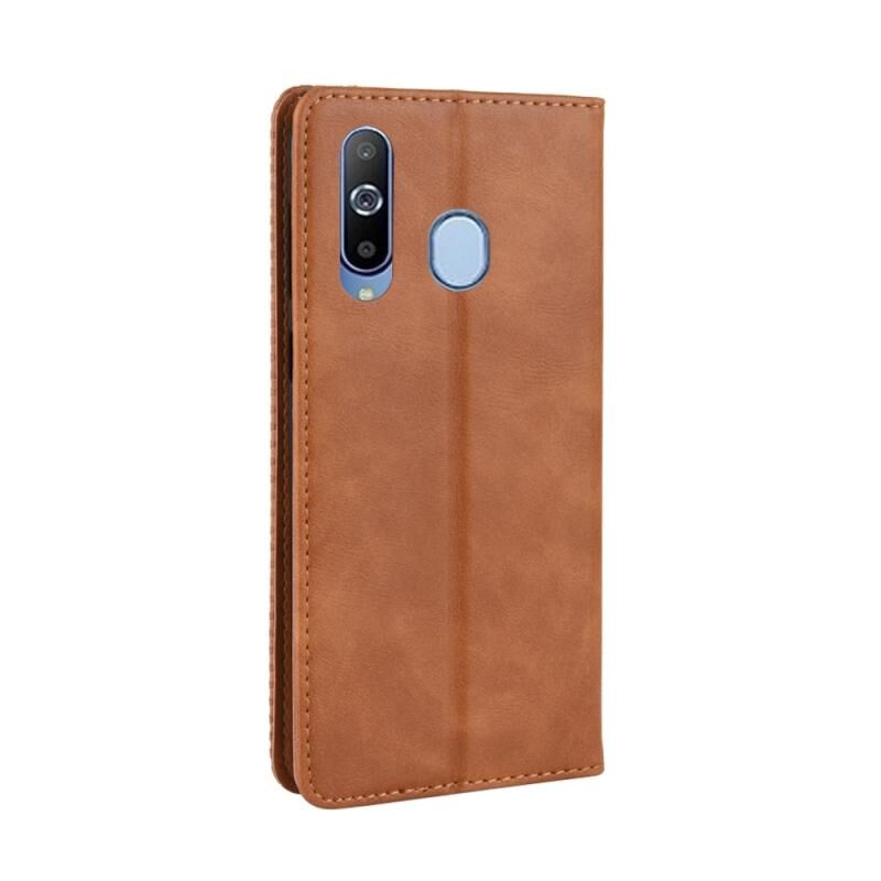 Μαγνητική πόρπη Retro Crazy Horse Υφή Οριζόντια Flip δερμάτινη θήκη για Galaxy A60, με θήκη & υποδοχές για κάρτες & πλαίσιο φωτογραφιών (καφέ)