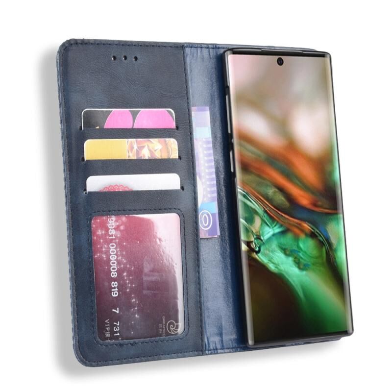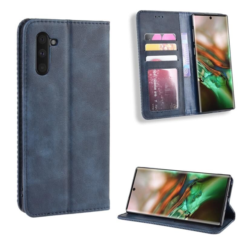 Μαγνητική πόρπη Retro Crazy Horse Υφή Οριζόντια Flip δερμάτινη θήκη για Galaxy Note 10 , με θήκη & υποδοχές για κάρτες & πλαίσιο φωτογραφιών (μπλε)