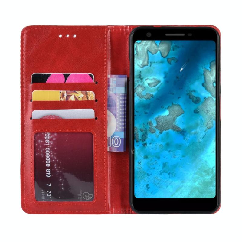 Magnetic Buckle Retro Crazy Horse Texture Horizontal Flip Leather Case for Google Pixel 3a XL , with Holder & Card Slots & Photo Frame(Red)