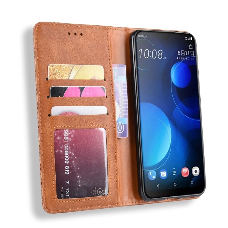 Μαγνητική πόρπη Retro Crazy Horse Υφή Οριζόντια Flip δερμάτινη θήκη για HTC Desire 19+ (Desire 19 Plus) , με θήκη & υποδοχές για κάρτες & πλαίσιο φωτογραφιών (καφέ)