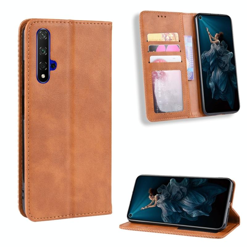 Magnetic Buckle Retro Crazy Horse Texture Horizontal Flip Leather Case for HUAWEI Honor 20 , with Holder & Card Slots & Photo Frame(Brown)