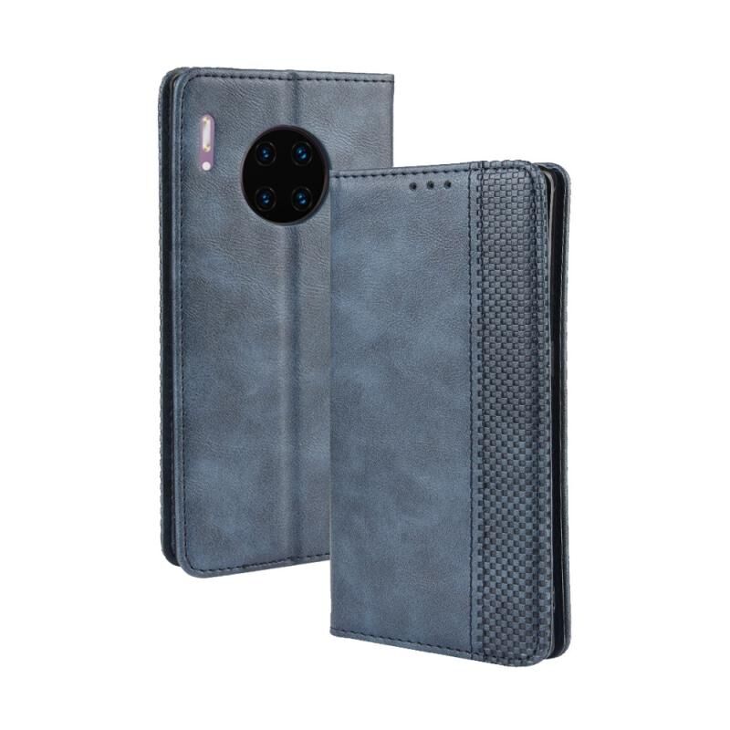 Μαγνητική πόρπη Retro Crazy Horse Υφή Οριζόντια Flip δερμάτινη θήκη για Huawei Mate 30 Pro , με υποδοχή & υποδοχές καρτών & πλαίσιο φωτογραφιών (μπλε)