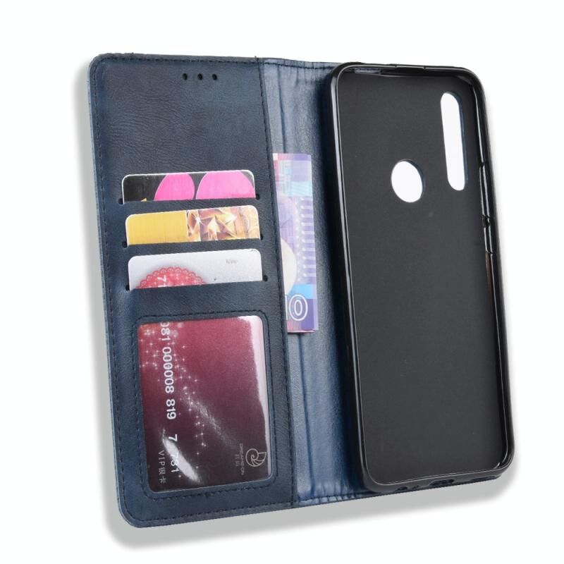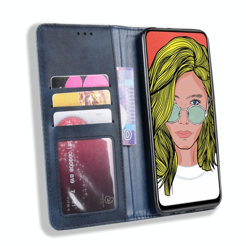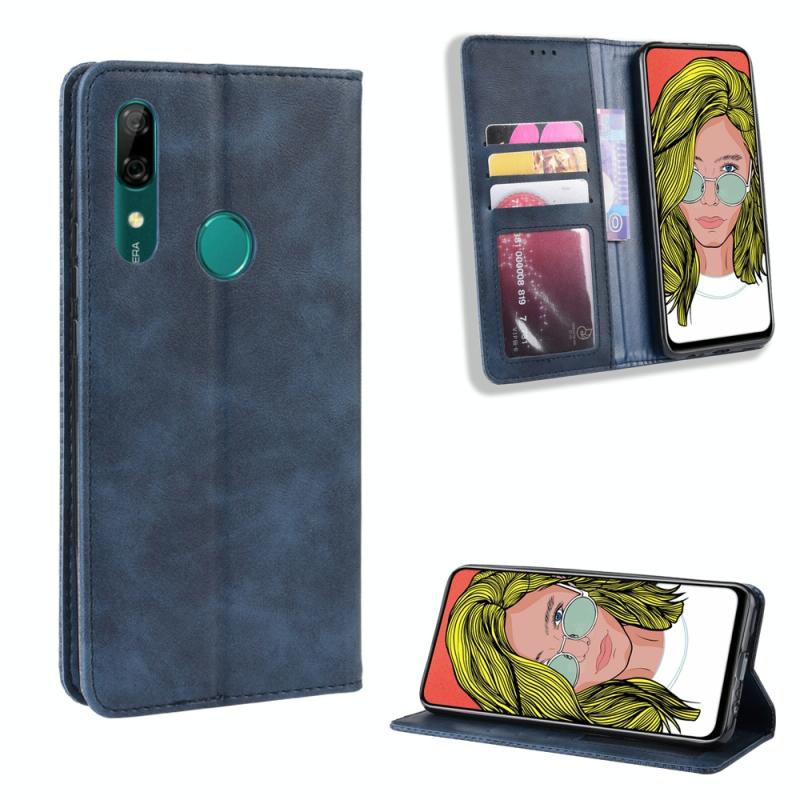 Magnetic Buckle Retro Crazy Horse Texture Horizontal Flip Leather Case for Huawei P Smart Z , with Holder & Card Slots & Photo Frame(Blue)