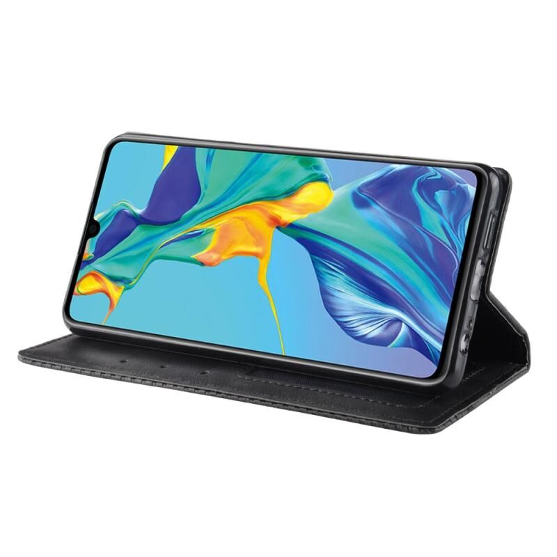 Μαγνητική αγκράφα Retro Crazy Horse Υφή Οριζόντια Flip δερμάτινη θήκη για Huawei P30, με θήκη & υποδοχές καρτών & πλαίσιο φωτογραφιών (Μαύρο)