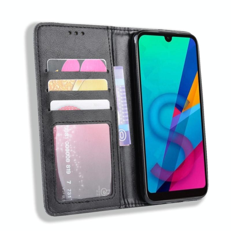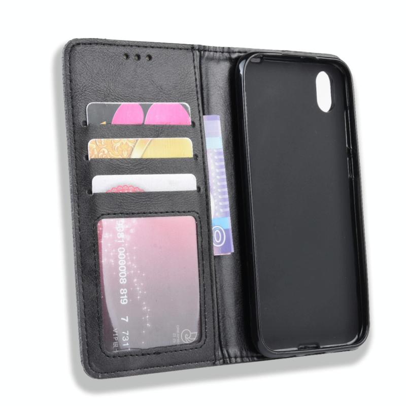 Magnetic Buckle Retro Crazy Horse Texture Horizontal Flip Leather Case for Huawei Y5 (2019), with Holder & Card Slots & Photo Frame(Black)