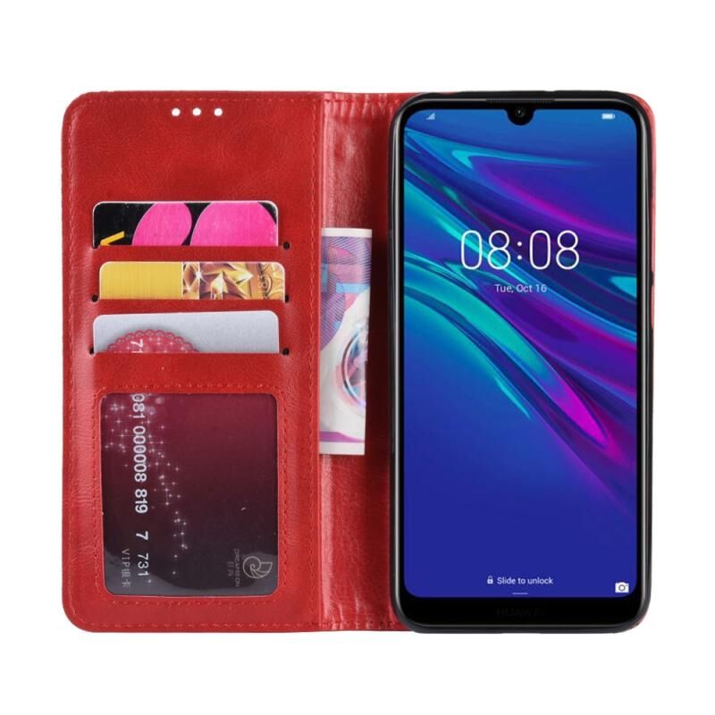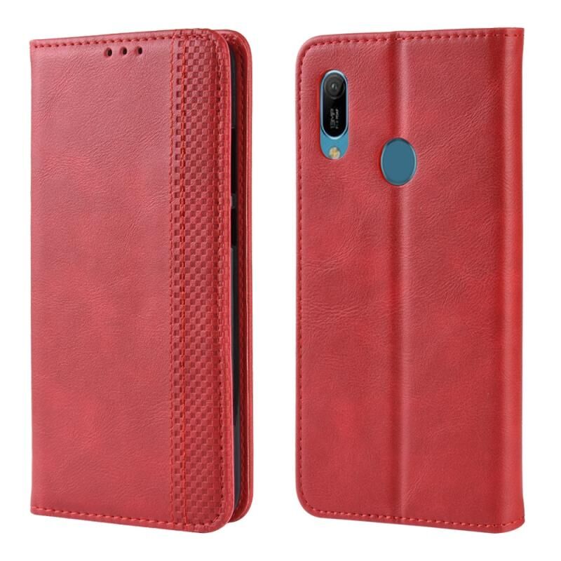 Μαγνητική πόρπη Retro Crazy Horse Texture Horizontal Flip Leather Case για Huawei Y6 (2019), με θήκη & υποδοχές καρτών & πλαίσιο φωτογραφιών (κόκκινο)