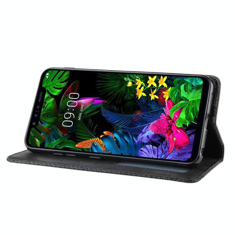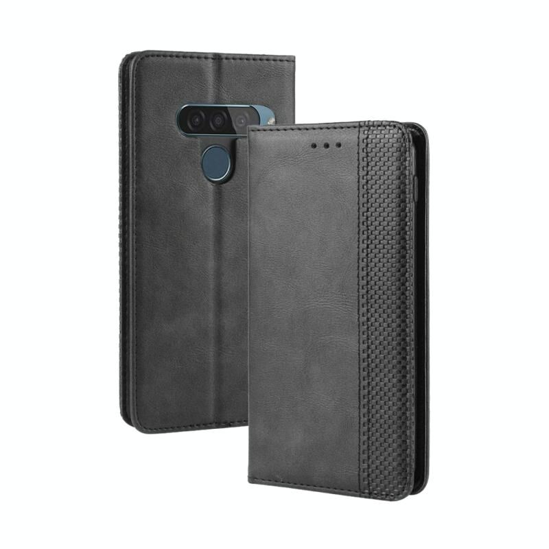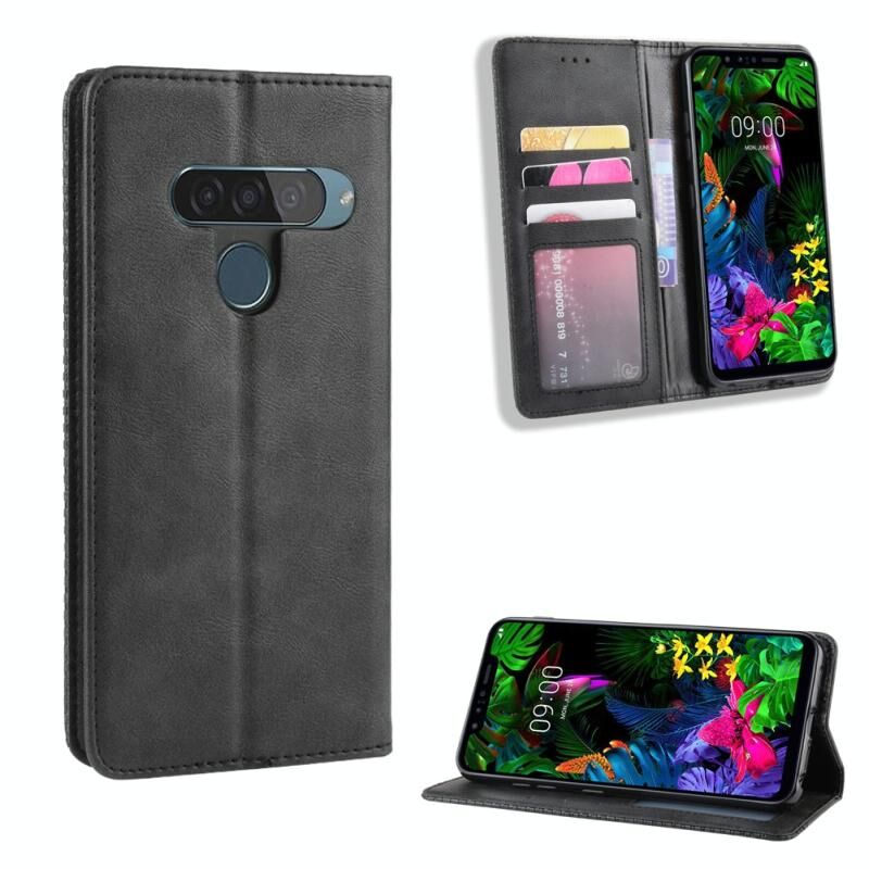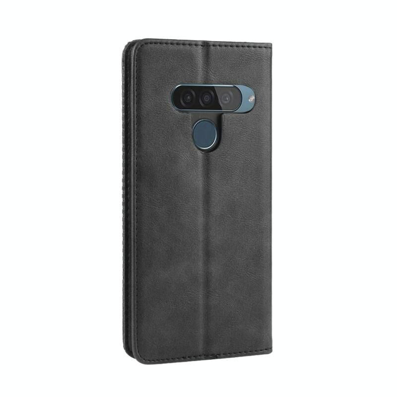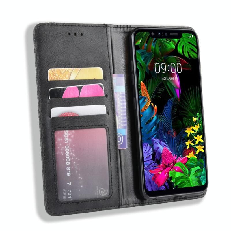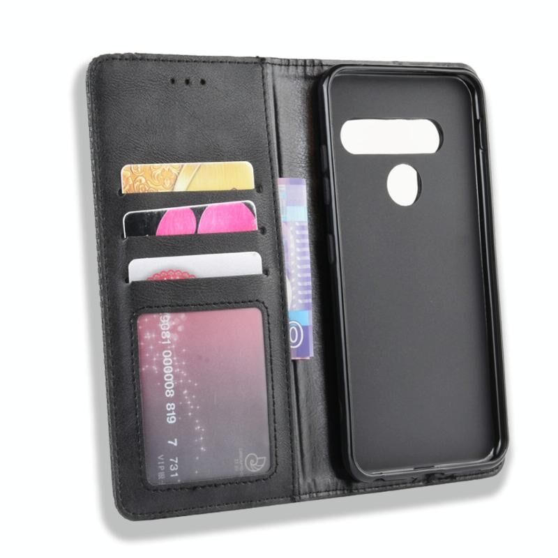 Μαγνητική αγκράφα Retro Crazy Horse Υφή Οριζόντια Flip δερμάτινη θήκη για LG G8S ThinQ, με υποδοχή & υποδοχές για κάρτες & πλαίσιο φωτογραφιών (Μαύρο)