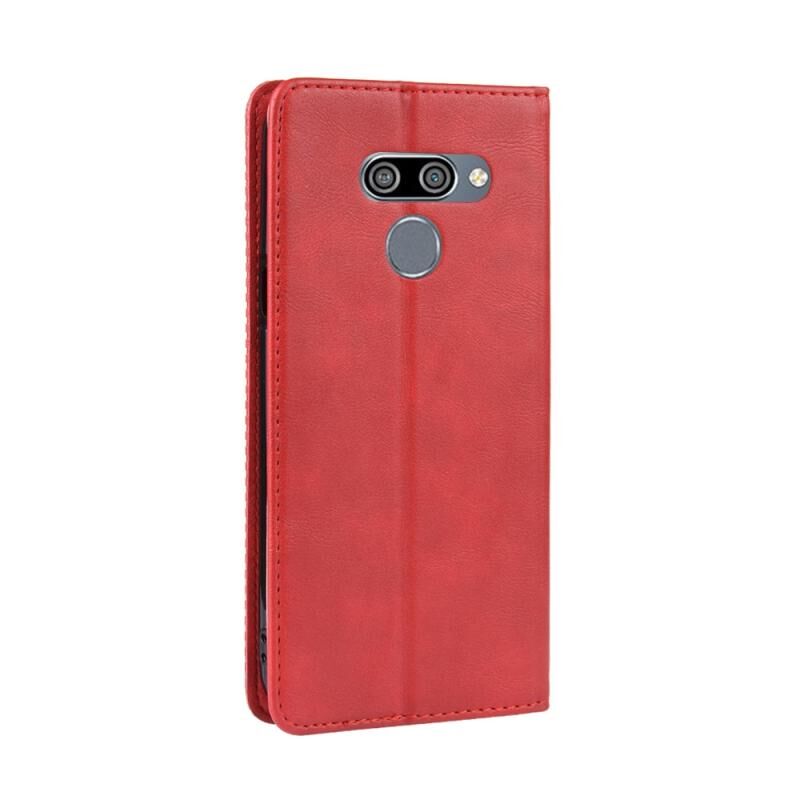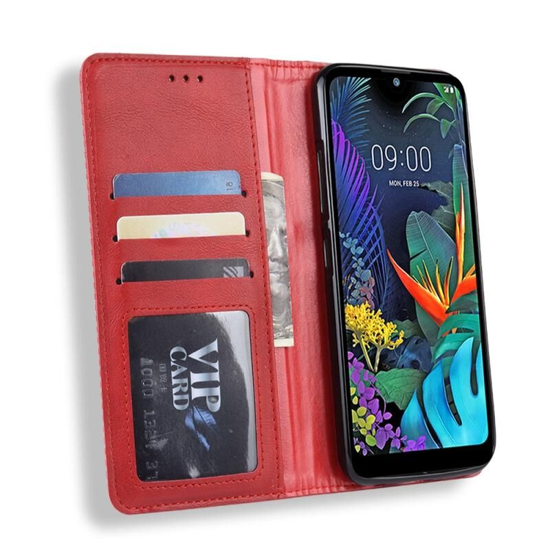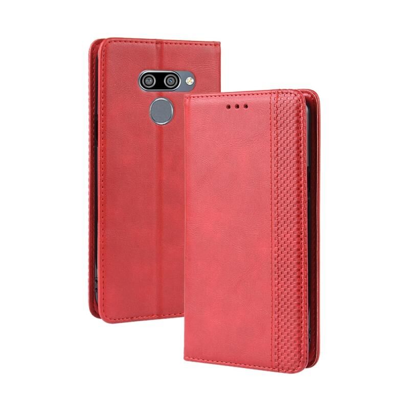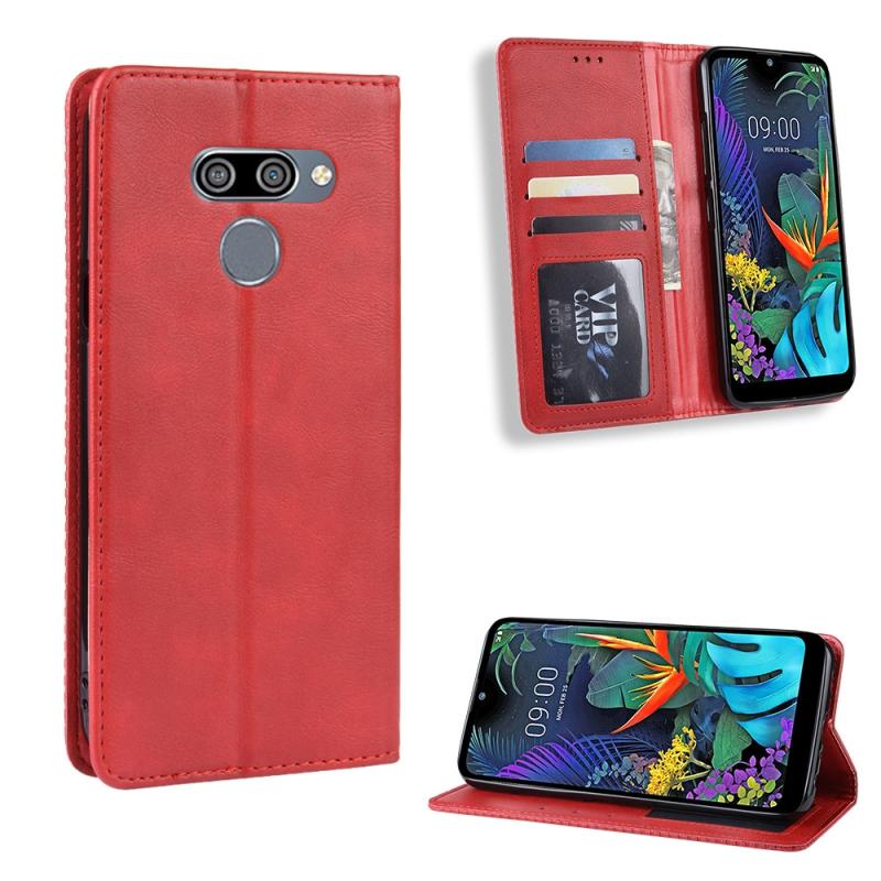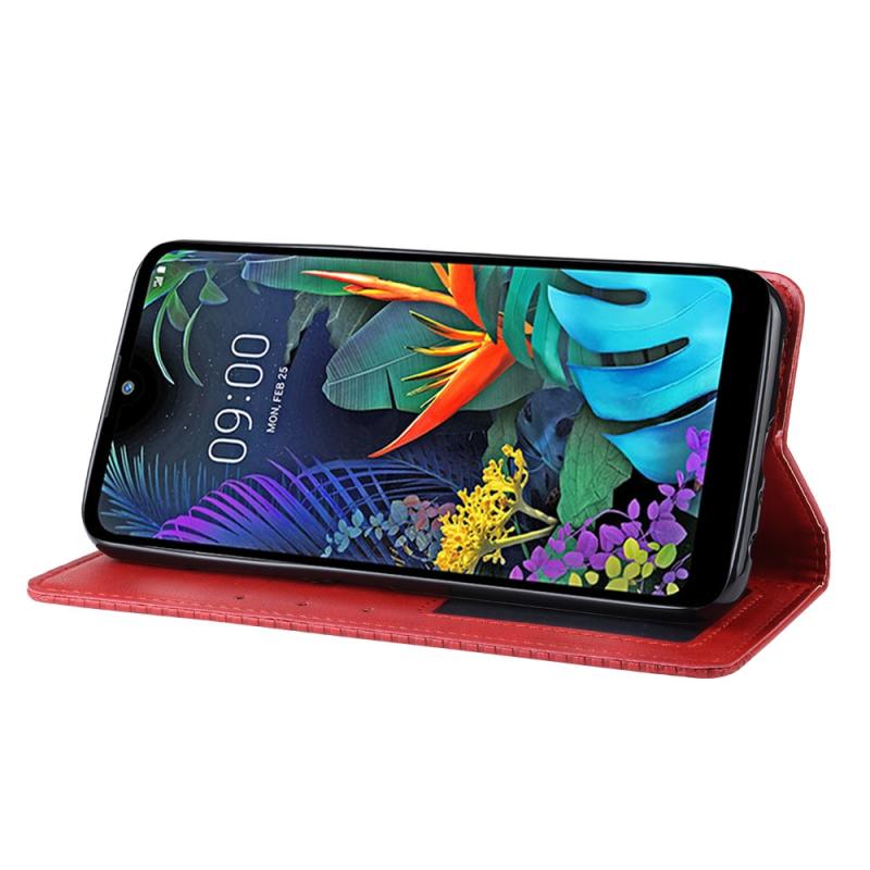 Magnetic Buckle Retro Crazy Horse Texture Horizontal Flip Leather Case for LG K50 /LG Q60 , with Holder & Card Slots & Photo Frame(Red)