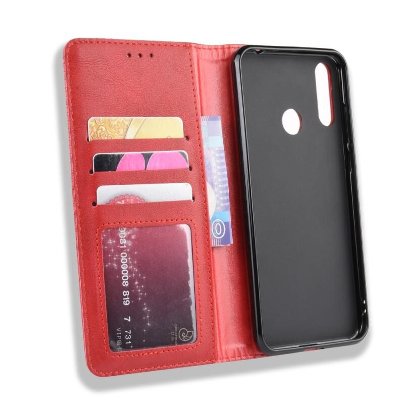 Μαγνητική πόρπη Retro Crazy Horse Υφή Οριζόντια Flip δερμάτινη θήκη για LG W30, με υποδοχή & υποδοχές για κάρτες & πλαίσιο φωτογραφιών (κόκκινο)