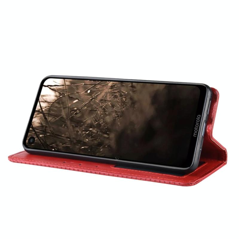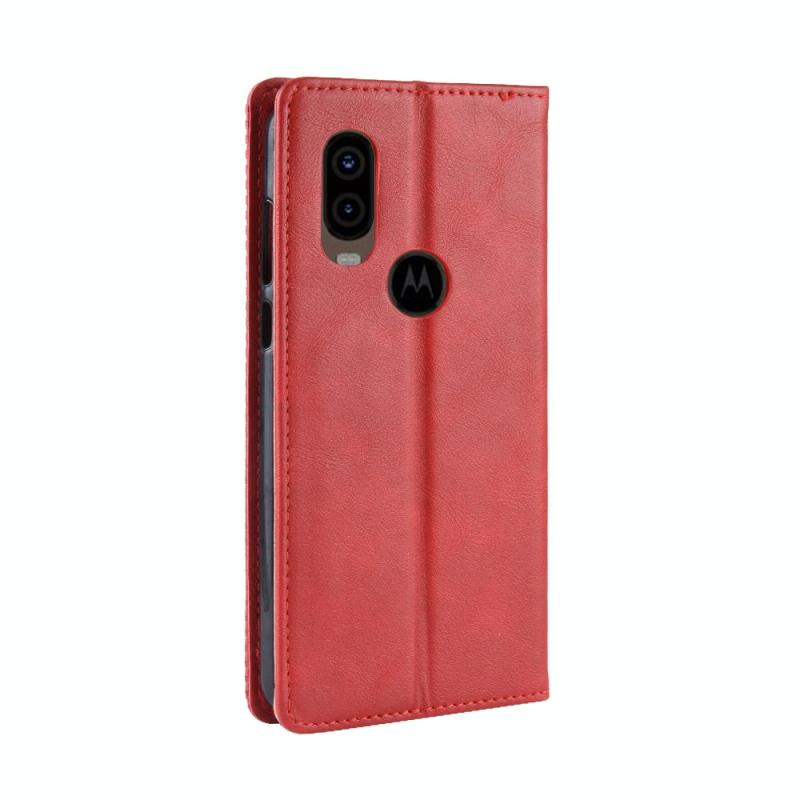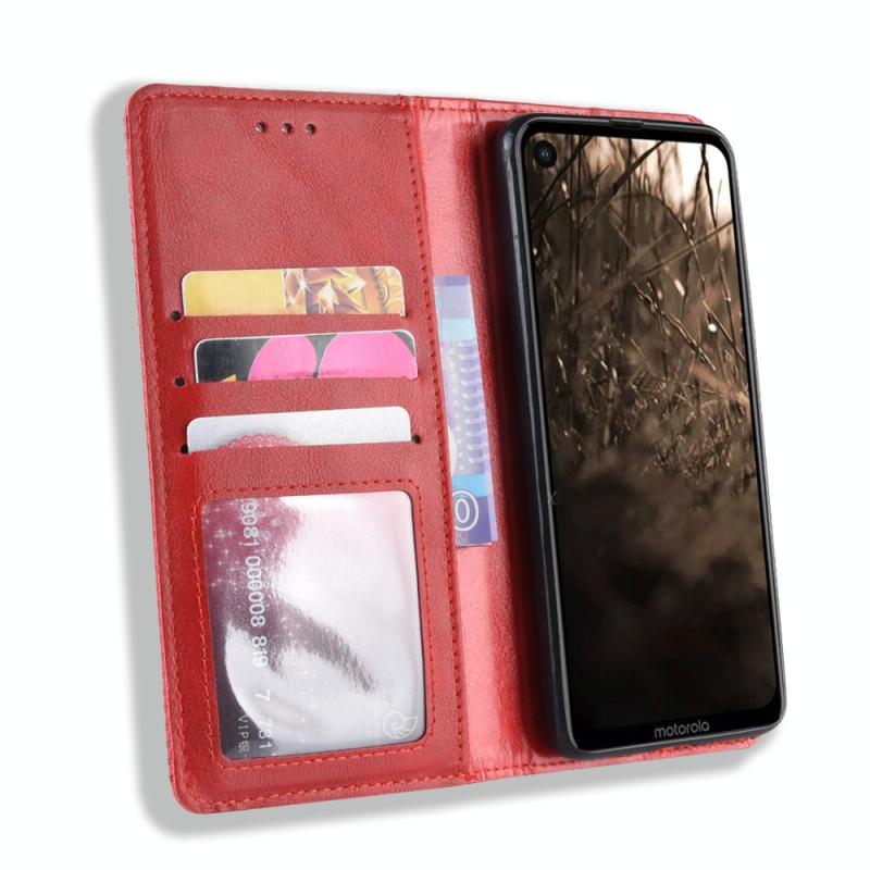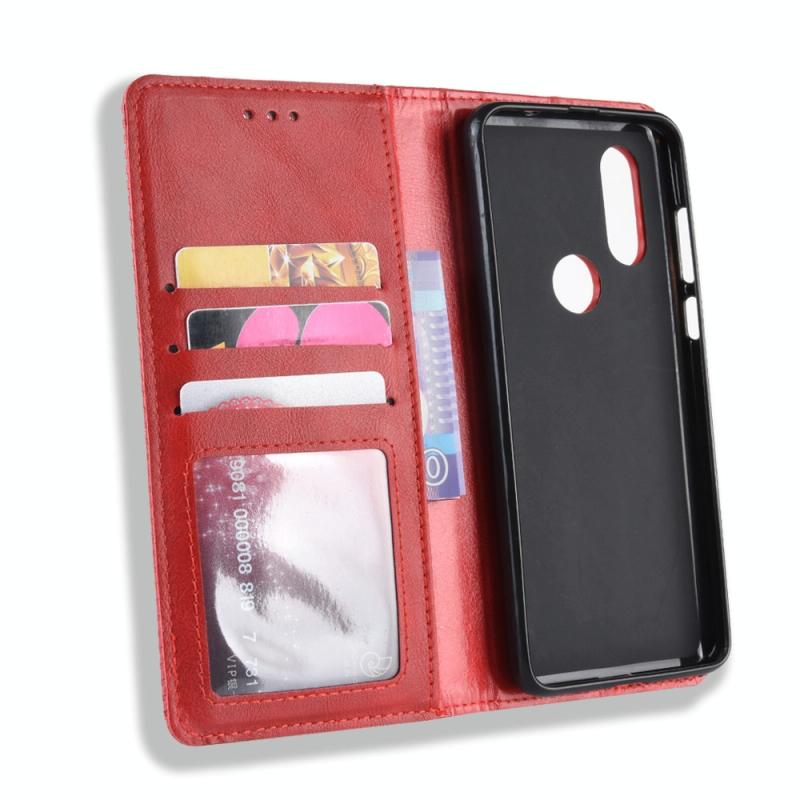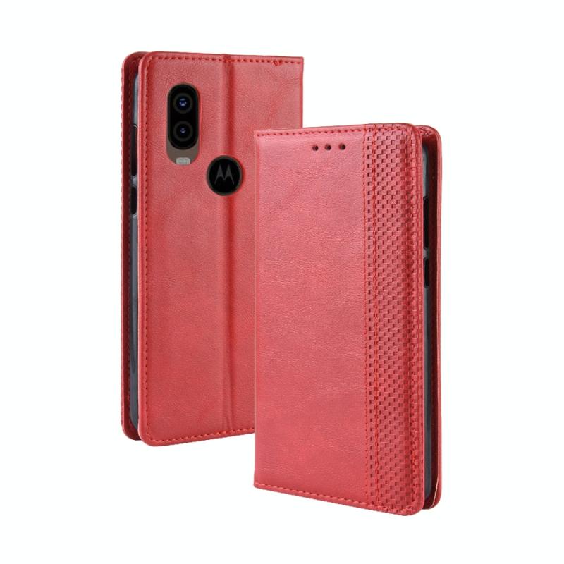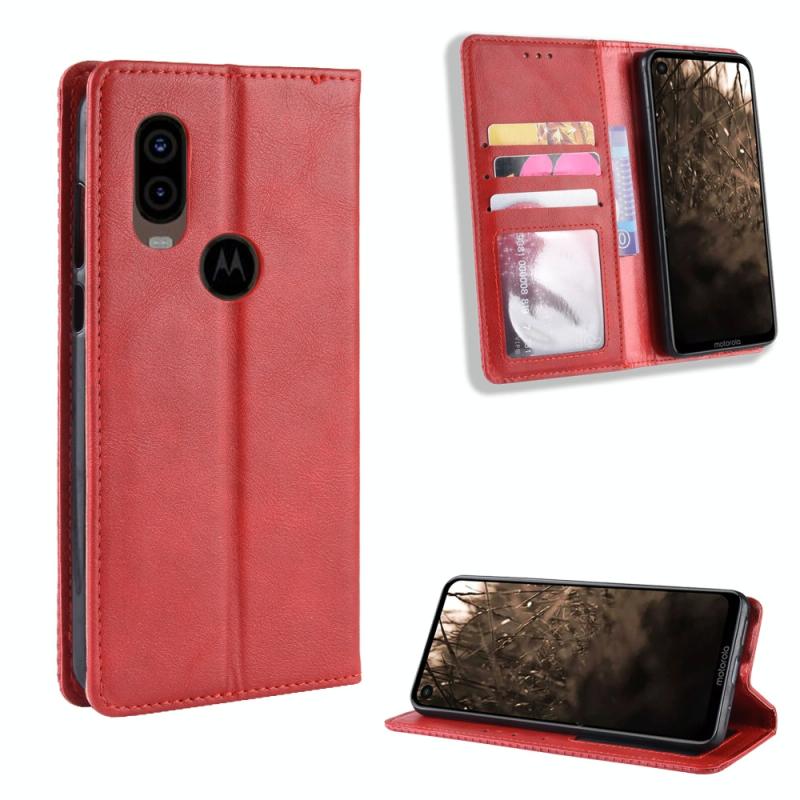 Magnetic Buckle Retro Crazy Horse Texture Horizontal Flip Leather Case for Motorola MOTO One Vision, with Holder & Card Slots & Photo Frame(Red)