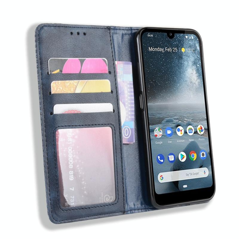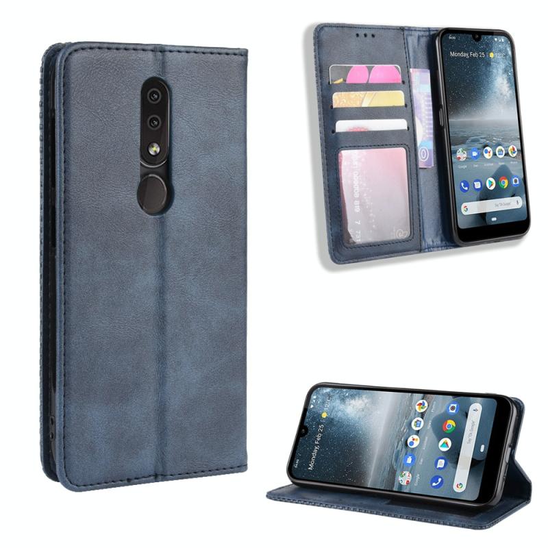 Magnetic Buckle Retro Crazy Horse Texture Horizontal Flip Leather Case for Nokia 4.2, with Holder & Card Slots & Photo Frame(Blue)