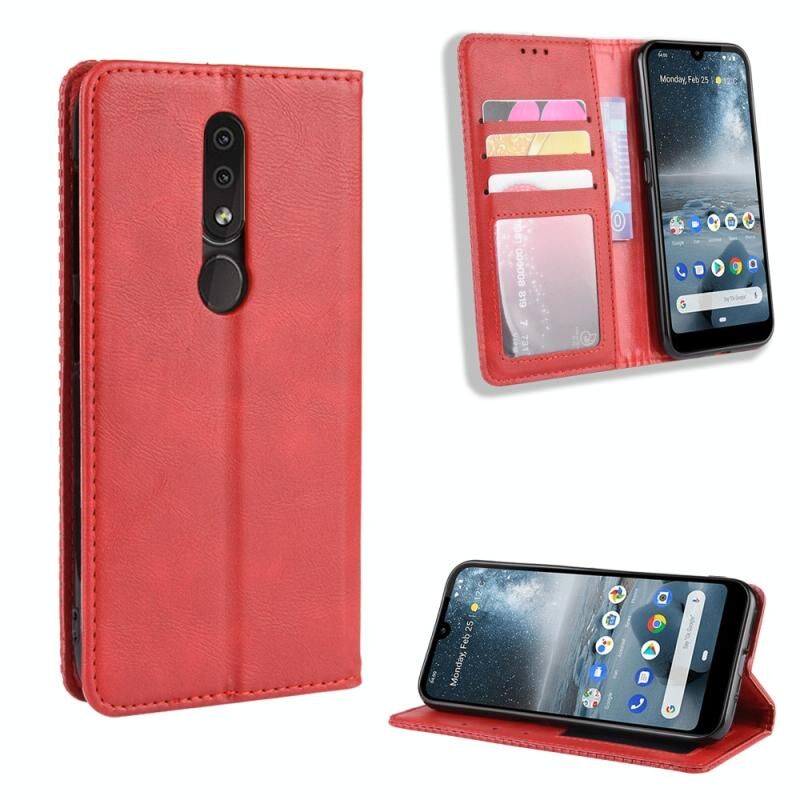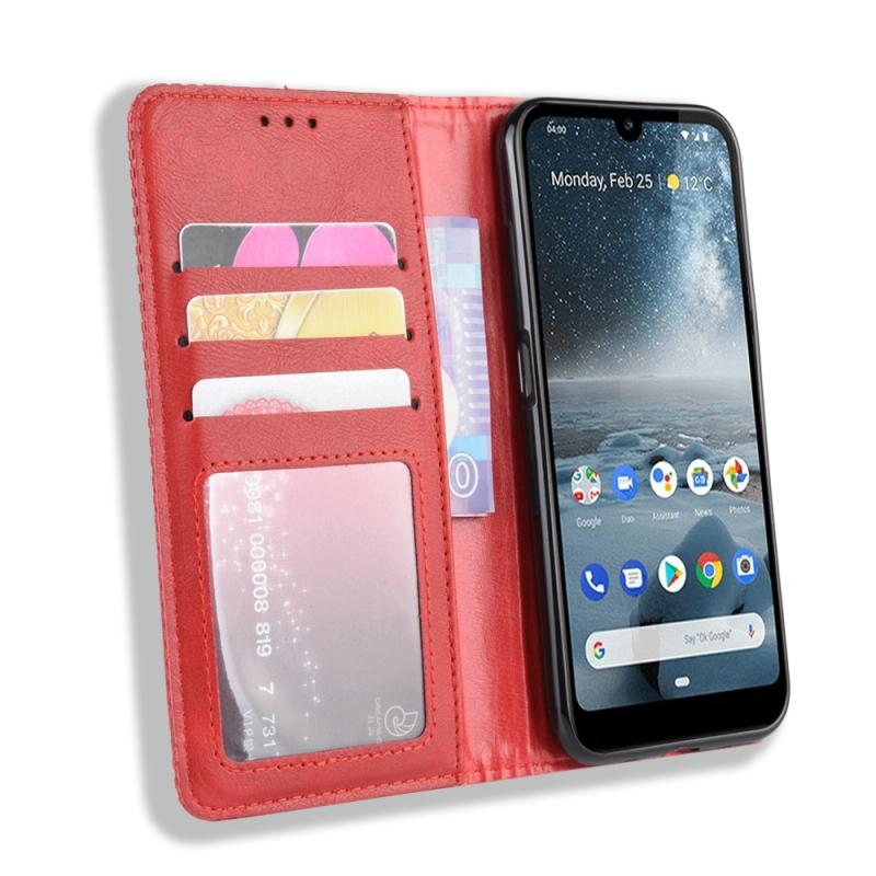 Magnetic Buckle Retro Crazy Horse Texture Horizontal Flip Leather Case for Nokia 4.2, with Holder & Card Slots & Photo Frame(Red)