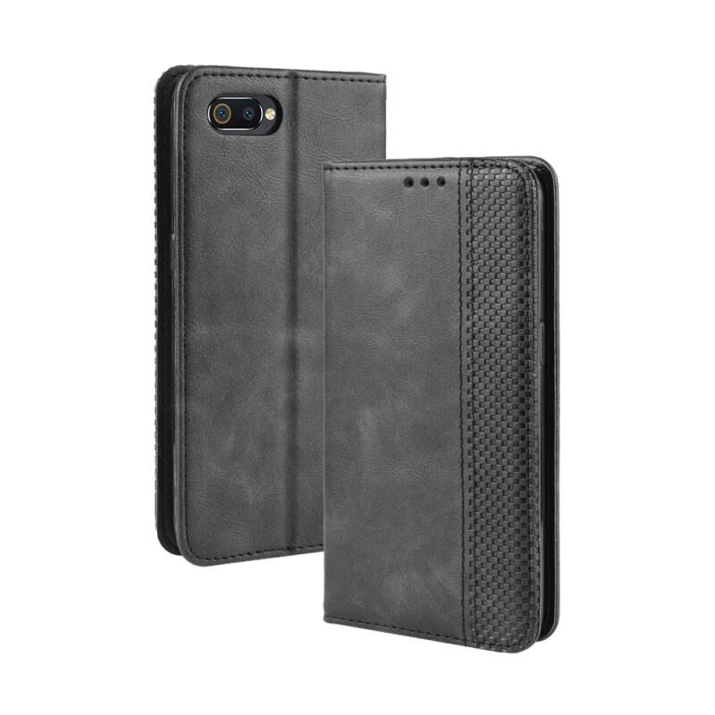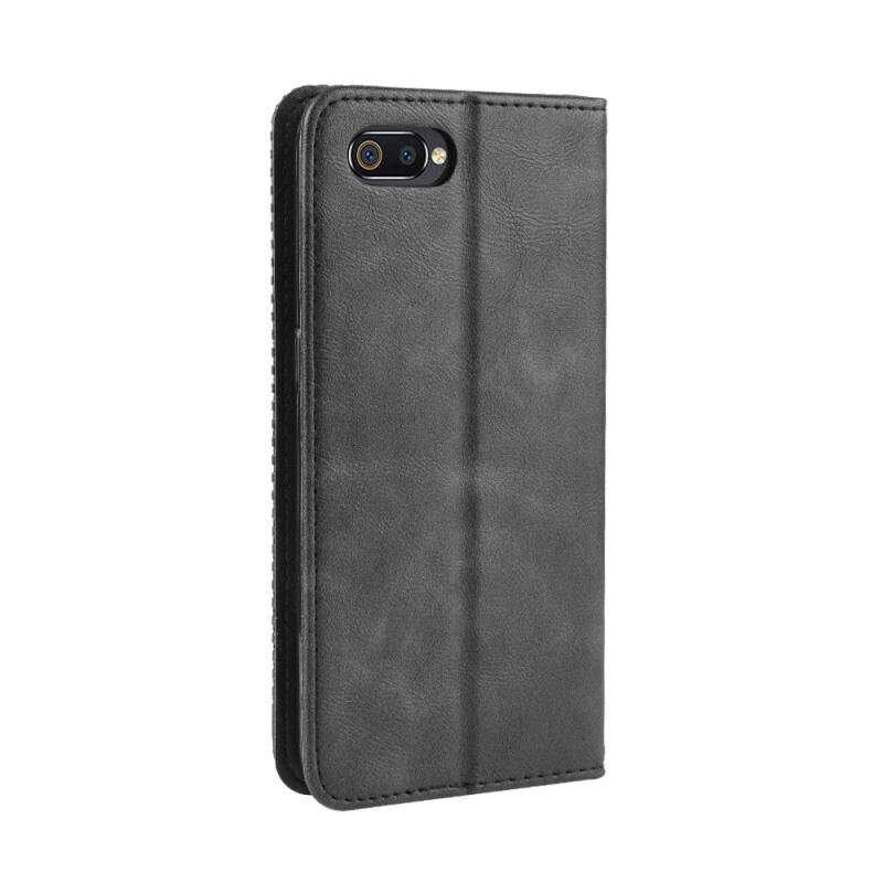 Μαγνητική πόρπη Retro Crazy Horse Υφή Οριζόντια Flip δερμάτινη θήκη για OPPO Realme C2 / A1K , με υποδοχή & υποδοχές καρτών & πλαίσιο φωτογραφιών (μαύρο)