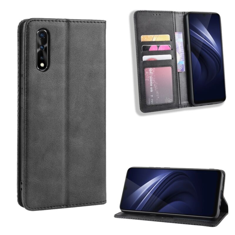 Μαγνητική πόρπη Ρετρό Crazy Horse Υφή Οριζόντια Flip δερμάτινη θήκη για vivo iQOO Neo/S1/Y7S/Z5, με υποδοχή & υποδοχές καρτών & πλαίσιο φωτογραφιών (μαύρο)