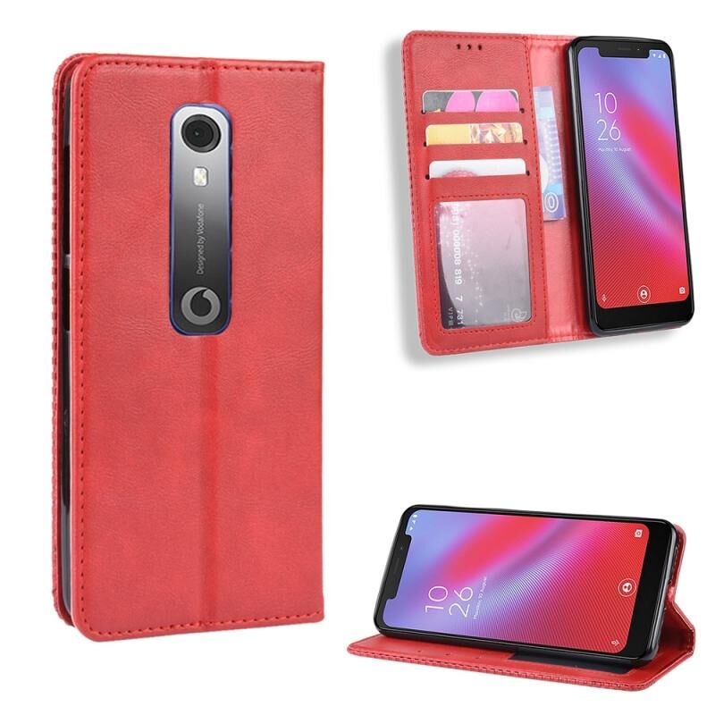 Magnetic Buckle Retro Crazy Horse Texture Horizontal Flip Leather Case for Vodafone Smart N10 (VFD630) , with Holder & Card Slots & Photo Frame(Red)