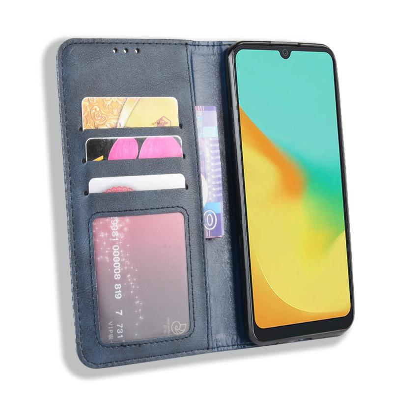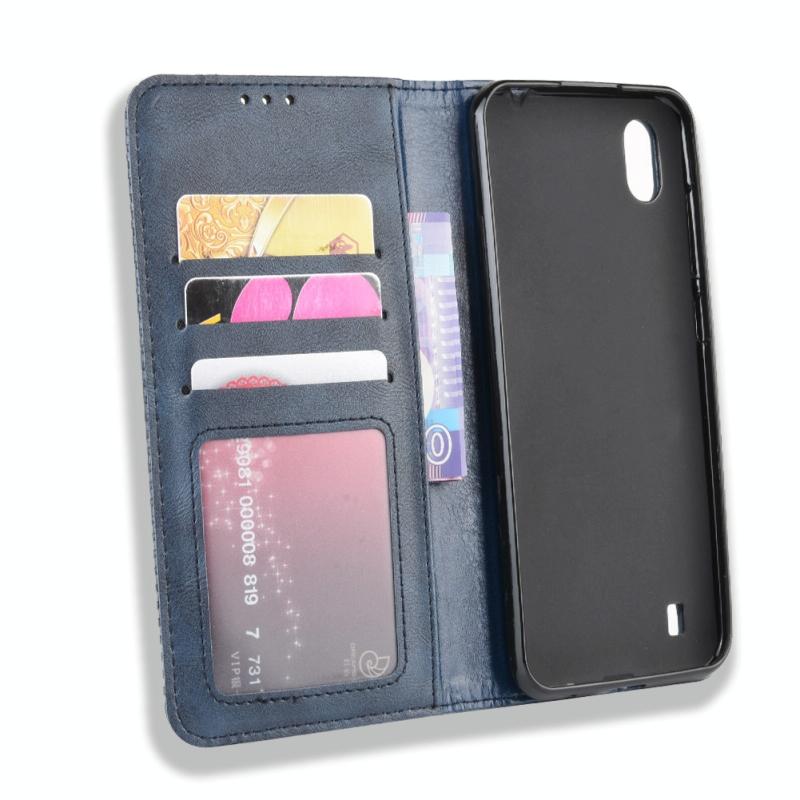 Magnetic Buckle Retro Crazy Horse Texture Horizontal Flip Leather Case for ZTE Blade A7 (2019) , with Holder & Card Slots & Photo Frame(Blue)