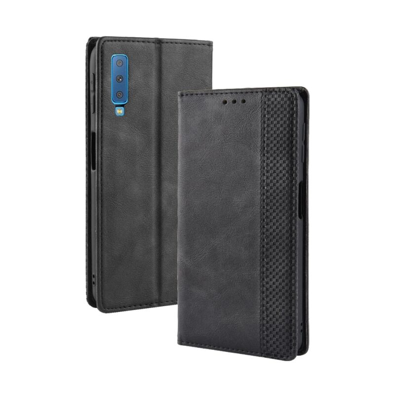 Μαγνητική αγκράφα Retro υφή Οριζόντια Flip δερμάτινη θήκη για Galaxy A7 (2018), με θήκη & υποδοχές για κάρτες & πορτοφόλι (Μαύρο)