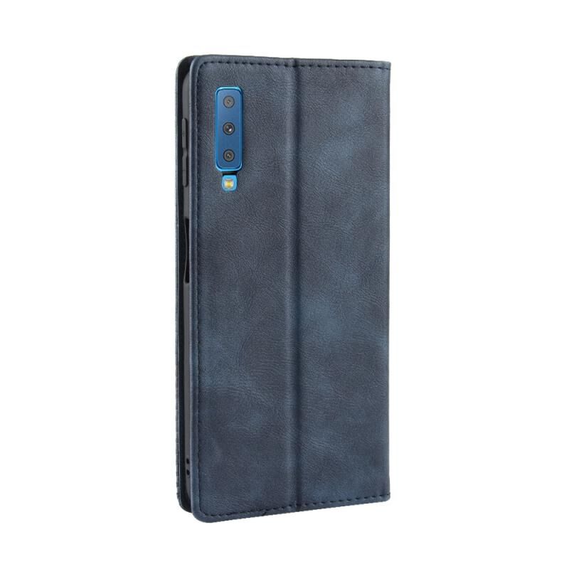 Μαγνητική αγκράφα Retro υφή Οριζόντια Flip δερμάτινη θήκη για Galaxy A7 (2018), με θήκη & υποδοχές για κάρτες & πορτοφόλι (μπλε)