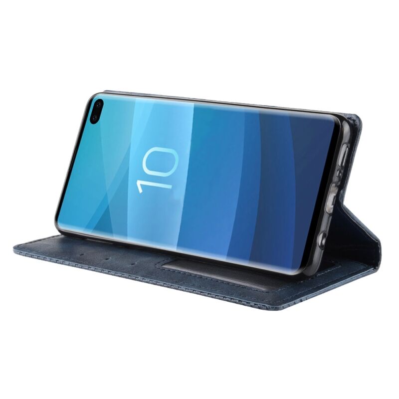 Μαγνητική αγκράφα Retro υφή οριζόντια Flip δερμάτινη θήκη για Galaxy S10+, με θήκη & υποδοχές για κάρτες & πορτοφόλι (μπλε)