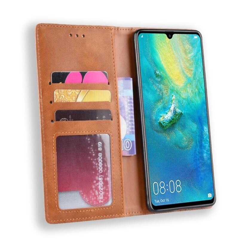 Μαγνητική αγκράφα Ρετρό υφή Οριζόντια Flip δερμάτινη θήκη για Huawei P30 Pro, με θήκη & υποδοχές για κάρτες & πορτοφόλι (καφέ)