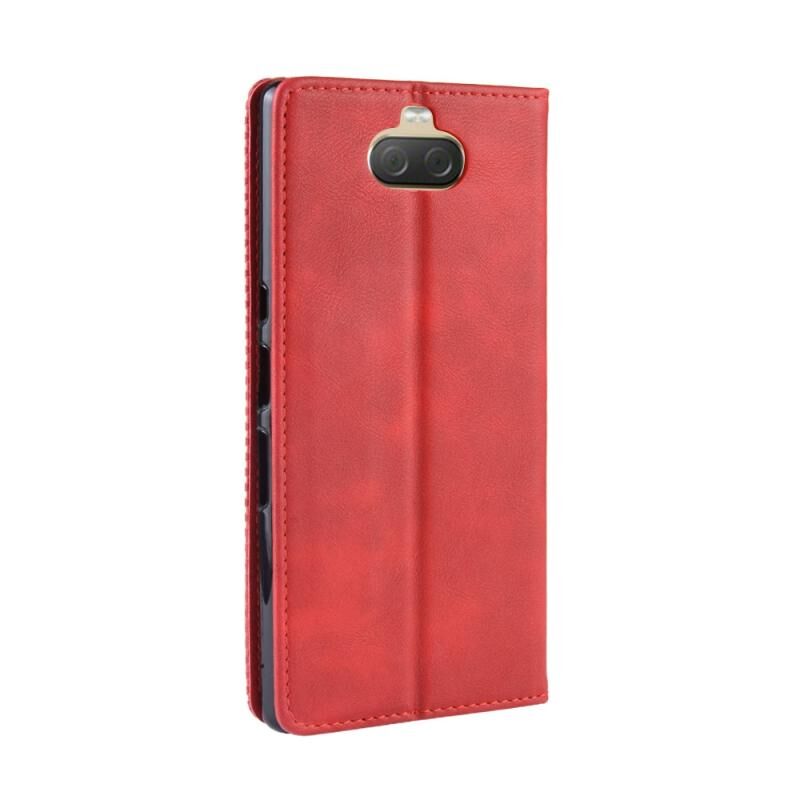 Μαγνητική αγκράφα Retro υφή Οριζόντια Flip δερμάτινη θήκη για Sony Xperia 10, με θήκη & υποδοχές για κάρτες & πορτοφόλι (κόκκινο)