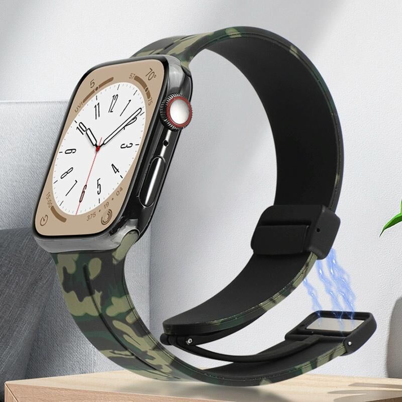 Μαγνητικό Κούμπωμα, Λουράκι Σιλικόνης Καμουφλάζ για Apple Watch Series 8&7 45mm / SE 2&6&SE&5&4 44mm / 3&2&1 42mm (Καμουφλάζ Λευκό)