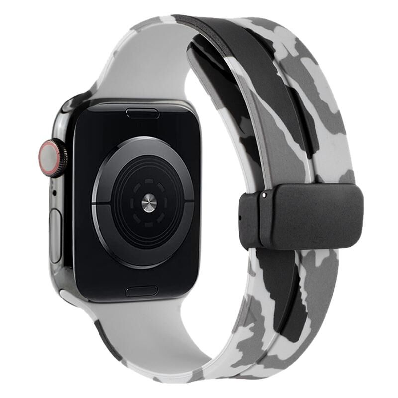Magnetic Clasp Camouflage Silicone Watch Band For Apple Watch Series 8&7 45mm / SE 2&6&SE&5&4 44mm / 3&2&1 42mm(Camouflage Light Grey)