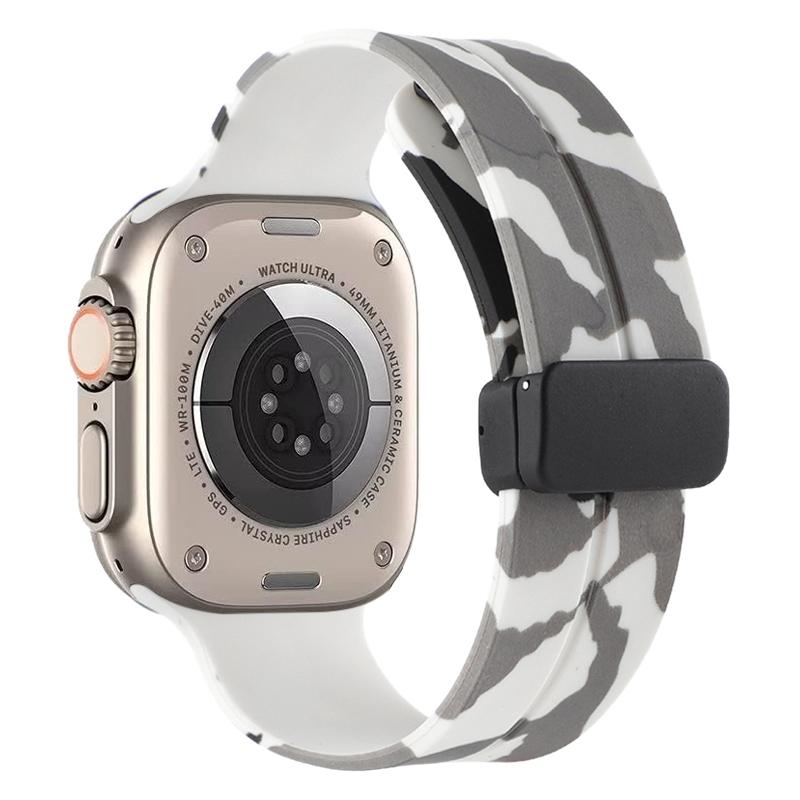 Μαγνητικό Κούμπωμα, Λουράκι Σιλικόνης Καμουφλάζ για Apple Watch Ultra 49mm (Καμουφλάζ Λευκό)