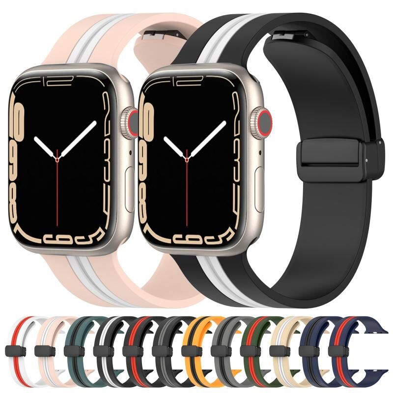 Μαγνητικό Κούμπωμα Διχρωμικό Λουράκι Σιλικόνης για Apple Watch Series 9&8&7 41mm / SE 3&SE 2&6&SE&5&4 40mm / 3&2&1 38mm (Λευκό+Κόκκινο)