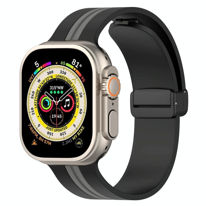 Μαγνητικό Κούμπωμα Διχρωμικό Λουράκι Σιλικόνης για Apple Watch Ultra 49mm (Μαύρο + Γκρι)