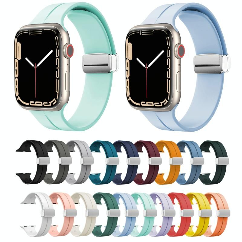 Μαγνητικό λουρί ρολογιού σιλικόνης με πτυσσόμενο κούμπωμα για Apple Watch Series 9&8&7 41mm / SE 3&SE 2&6&SE&5&4 40mm / 3&2&1 38mm (Λευκό)