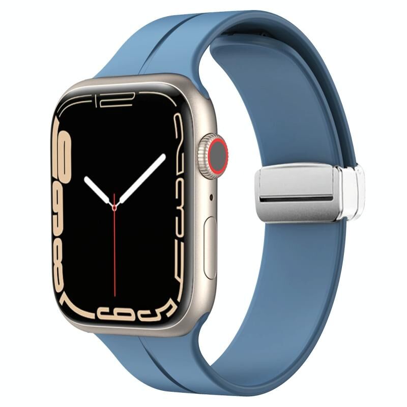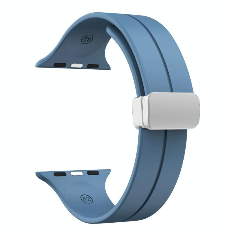 Magnetic Fold Clasp Silicone Watch Band For Apple Watch Series 9&8&7 41mm / SE 3&SE 2&6&SE&5&4 40mm / 3&2&1 38mm(Star Blue)