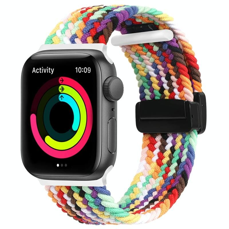 Μαγνητικό Κλείσιμο Δίπλωσης Πλεκτό Λουράκι για Apple Watch 9 41mm (Χρώμα Rainbow)