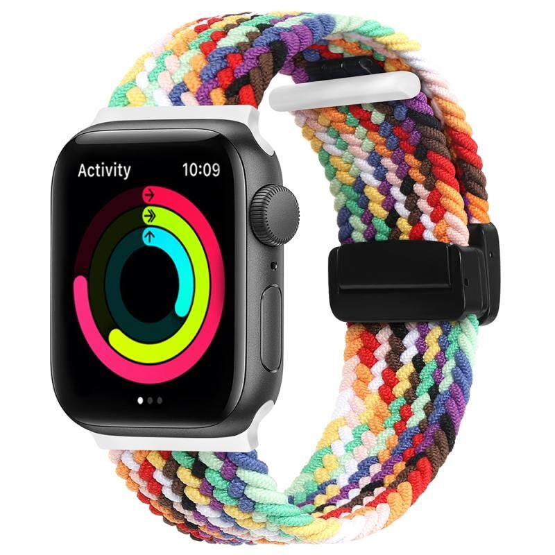 Μαγνητικό Κλείσιμο Δίπλωσης, Πλεκτό Λουράκι για Apple Watch 9 45mm (Rainbow Χρώμα)