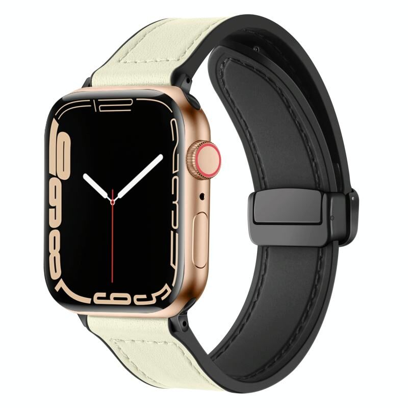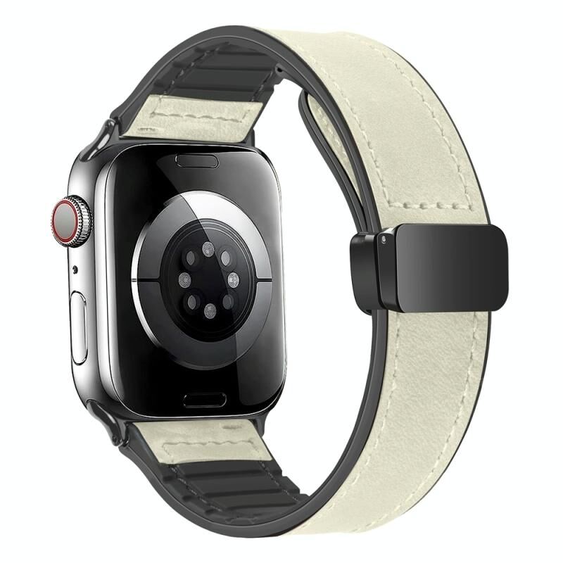 Magnetic Folding Silicone Leather Watch Band For Apple Watch Ultra 49mm&Watch Ultra 2 49mm / Series 9&8&7 45mm / SE 3&SE 2&6&SE&5&4 44mm / 3&2&1 42mm(Creamy White)