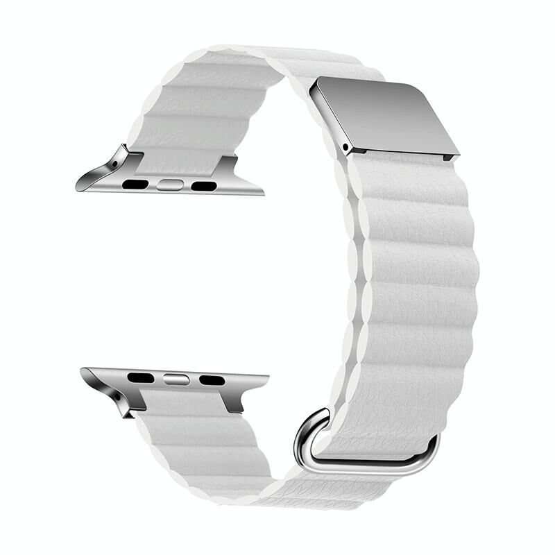 Μαγνητικό Δερμάτινο Λουρί για Apple Watch Ultra 49mm & Watch Ultra 2 49mm / Series 9 & 8 & 7 45mm / SE 3 & SE 2 & 6 & SE & 5 & 4 44mm / 3 & 2 & 1 42mm (Ασημένια Αγκράφα Λευκό)