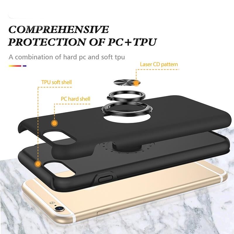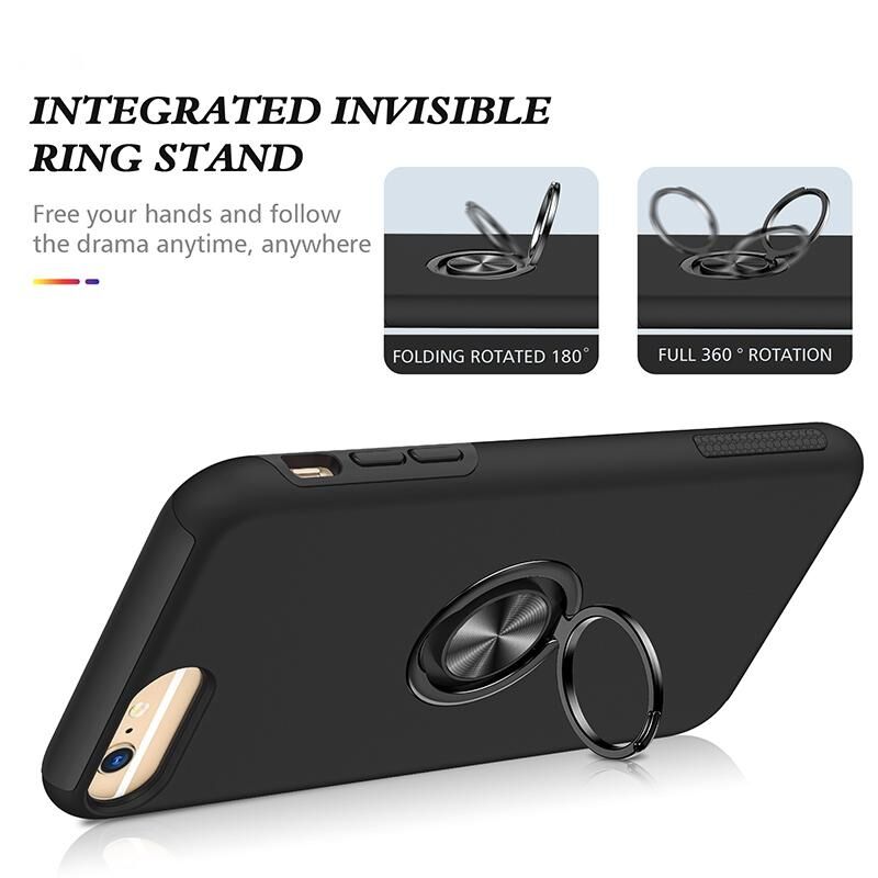 Θήκη τηλεφώνου με μαγνητικό δακτύλιο, βάση στήριξης και αντικραδασμική προστασία για iPhone 6 Plus (Μαύρο)