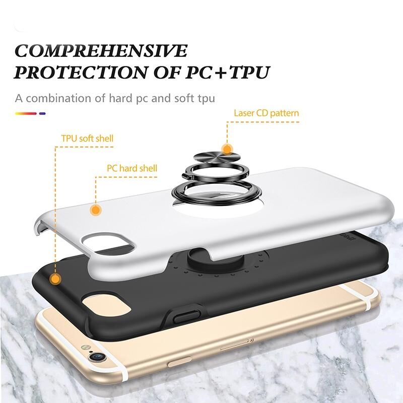 Θήκη τηλεφώνου με μαγνητικό δακτύλιο, βάση στήριξης και αντικραδασμική προστασία για iPhone 6 (Μαύρο)