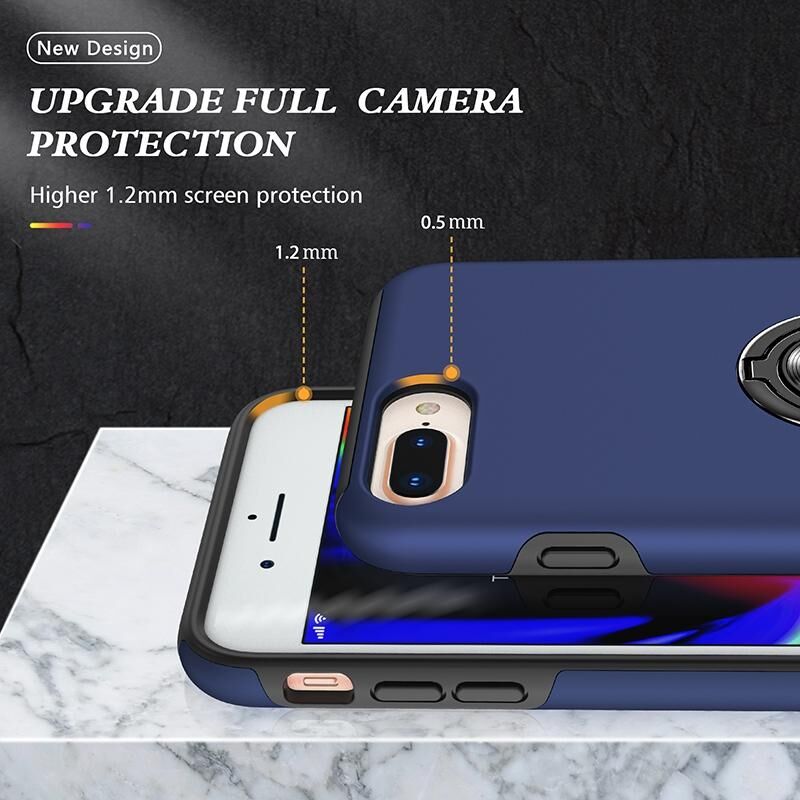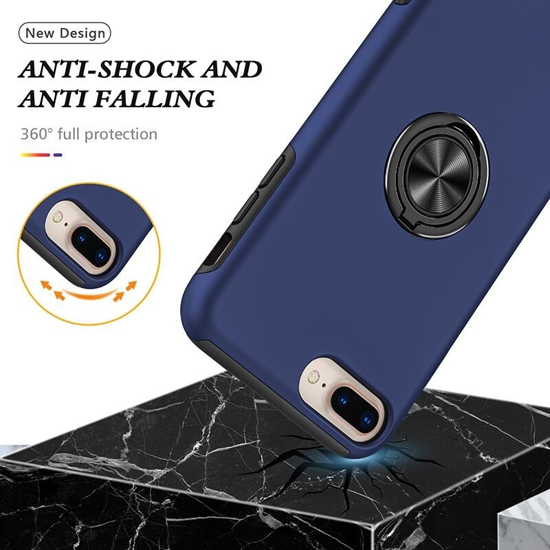 Θήκη κινητού τηλεφώνου με μαγνητικό δακτύλιο, στήριγμα και αντικραδασμική προστασία για iPhone 8 Plus / 7 Plus (Μαύρο)