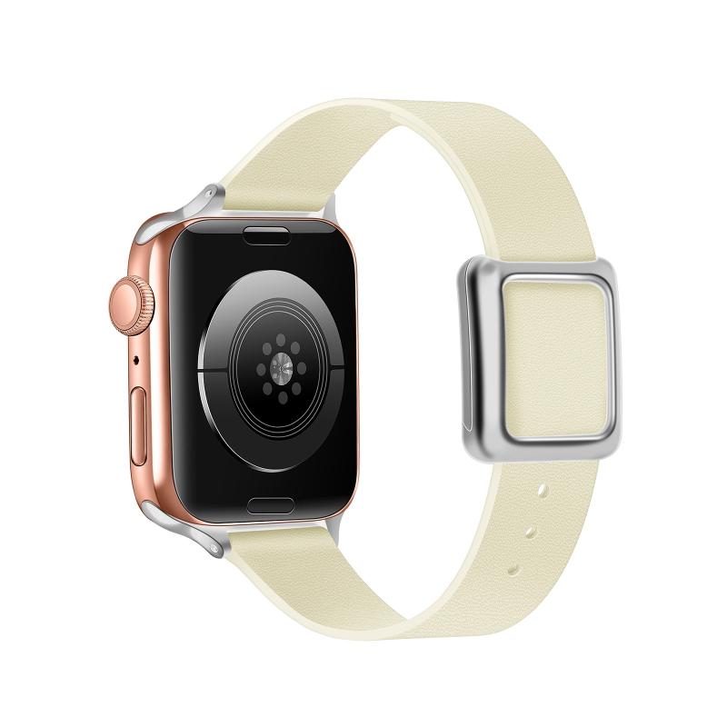 Μαγνητικό Ασημί Τετράγωνο Λουρί για Apple Watch Ultra 49mm & Watch Ultra 2 49mm / Series 9 & 8 & 7 45mm / SE 3 & SE 2 & 6 & SE & 5 & 4 44mm / 3 & 2 & 1 42mm (Μπεζ)