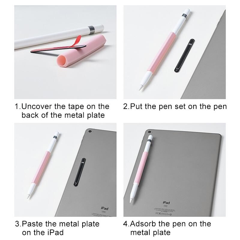 Magnetic Sleeve Silicone Holder Grip Set for Apple Pencil (Black)