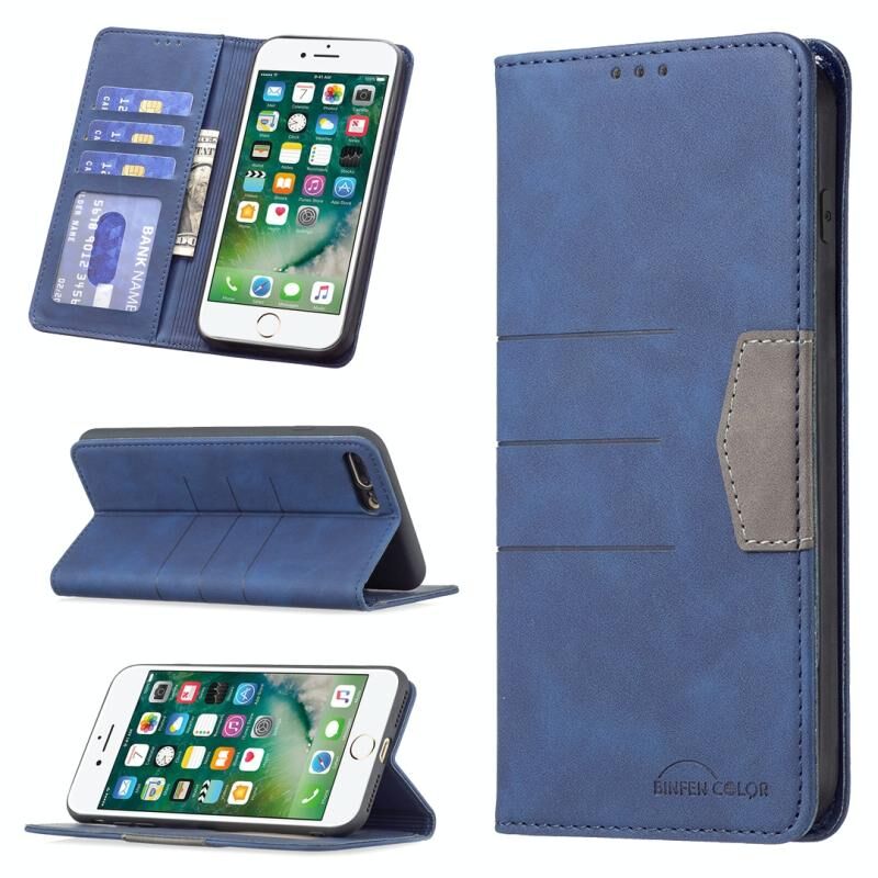 Magnetic Splicing Leather Phone Case For iPhone 8 Plus / 7 Plus(Blue)