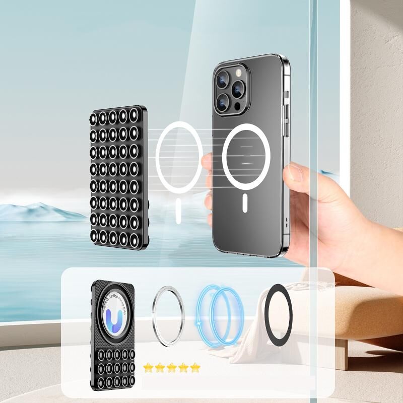 3. Κολλήστε εύκολα το τηλέφωνό σας σε επίπεδες, λείες και γυαλιστερές επιφάνειες, όπως καθρέφτες ή παράθυρα, για hands-free selfies/βίντεο.
