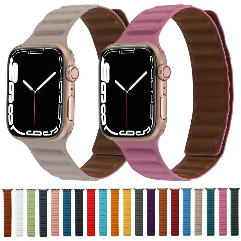 Μαγνητικό Δερμάτινο Λουράκι για Apple Watch Series 9&8&7 41mm / SE 3&SE 2&6&SE&5&4 40mm / 3&2&1 38mm (Καφέ Σέλας) - Διχρωμία, Λεπτό Σχέδιο