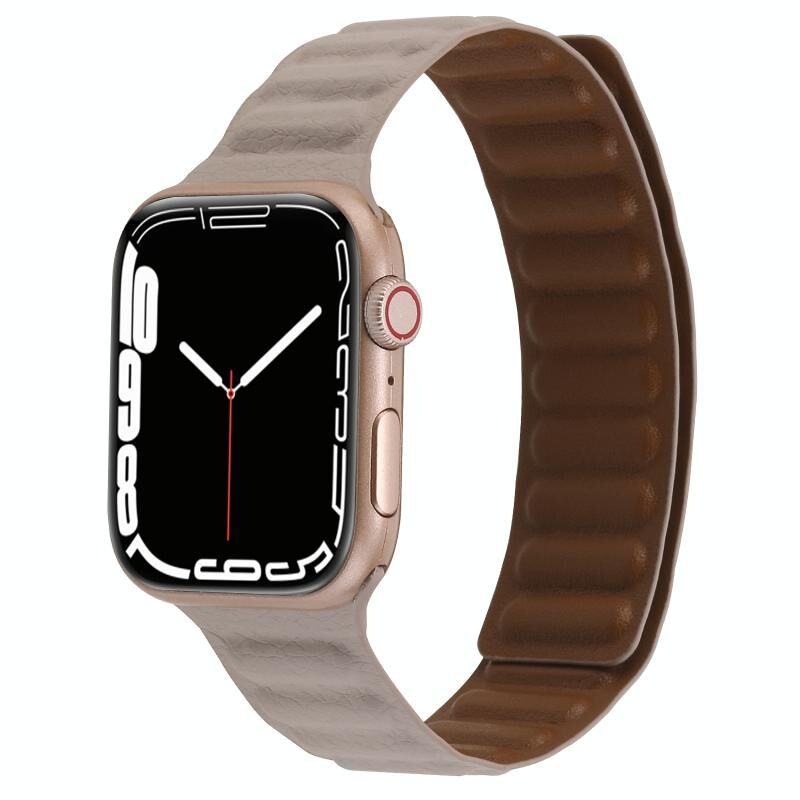 Magnetic Two-color Loop Slim Leather Watch Band For Apple Watch Ultra 49mm&Watch Ultra 2 49mm / Series 9&8&7 45mm / SE 3&SE 2&6&SE&5&4 44mm / 3&2&1 42mm(Khaki)