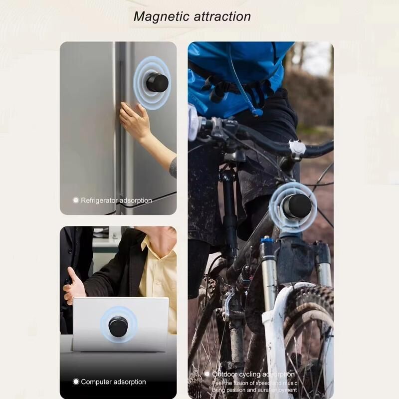1. Το ηχείο διαθέτει ενσωματωμένους μαγνήτες και μπορεί να τοποθετηθεί σε οποιαδήποτε μεταλλική επιφάνεια, όπως ψυγεία και ποδήλατα. Χρησιμοποιώντας τον μαγνητικό δακτύλιο στη συσκευασία, αυτό το ασύρματο ηχείο Bluetooth μπορεί να εγκατασταθεί σε οποιαδήποτε επιφάνεια, όπως γυαλί, πόρτες, ντουλάπια κ.λπ. Αναπαράγετε μουσική οποιαδήποτε στιγμή, οπουδήποτε χωρίς να καταλαμβάνει χώρο.