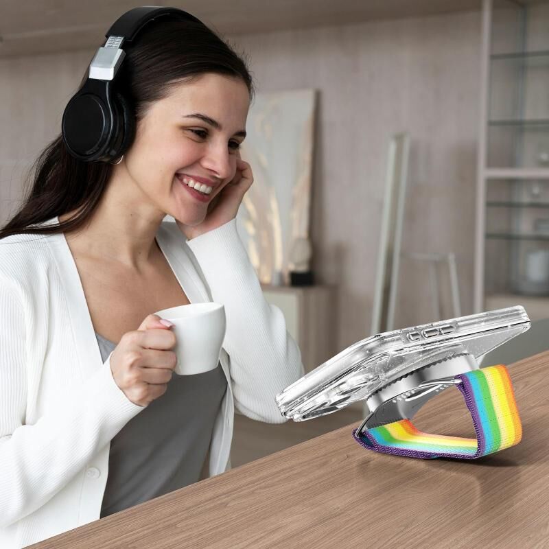 2. Υλικό: Κατασκευασμένο από ηλεκτροεπιχρυσωμένο PC, διατηρεί τη συσκευή σας σταθερή ακόμη και κατά τη διάρκεια έντονων δραστηριοτήτων, ελαχιστοποιώντας τον κίνδυνο ολίσθησης ή μετακίνησης.